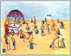 Дети окружают тележку с мороженым и замедляют ее движение. В результате она приобретает «массу».
