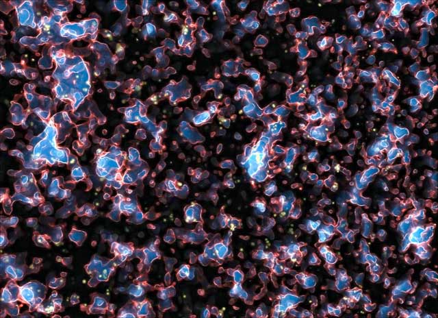 Теория плотностных возмущений в некоторой степени обеспечивает ключ к разгадке этой задачи. Согласно этой теории распределение галактик в пространстве определяется квантовыми толчками, которые испытало скалярное поле в течение инфляции. Это случайный процесс. Поэтому некоторые области одинакового размера содержат больше галактик, другие меньше. Млечный путь находится там, где мы, потому что скалярное поле в этом месте испытало небольшой толчок от истинного вакуума, поэтому скатилось с энергетической горы несколько позднее, чем соседние области. Это привело к небольшому увеличению плотности, которое позднее эволюционировало в нашу галактику. Аналогичные горбы привели к зарождению Андромеды и гигантского числа других галактик как внутри нашего горизонта, так и за его пределами. Такое описание образования структур предполагает, что удаленные части Вселенной выглядят так же, как и окружающая нас часть. Но мне с самого начала казалась, что в этой картине отсутствует что-то важное.