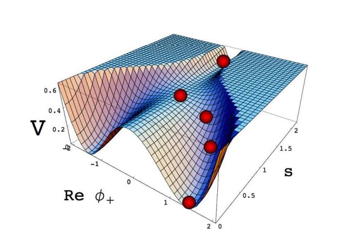 Эффект квантовых толчков очень мал, так как они существенно слабее, чем силы, обязанные наклону энергетической горы, которые управляют движением скалярного поля вниз. Это объясняет, почему поля достигает дна повсюду за одно и тоже время, и генерируются только малые флуктуации плотности. Вопрос, который я задал себе, был таков: что происходит вблизи вершины горы, где наклон очень мал? Может быть там мы находимся во власти квантовых толчков, которые случайным образом толкают поле на тот или иной путь. В таком случае Вселенная, подвергнутая инфляции, может быть значительно более случайной, чем это кажется на первый взгляд.