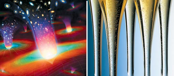 С появлением теории инфляции Большой взрыв перестал быть единственным уникальным событием. Согласно ей вселенные возникают и расширяются, как пузырьки в бокале шампанского. И таких «бокалов» может быть множество.