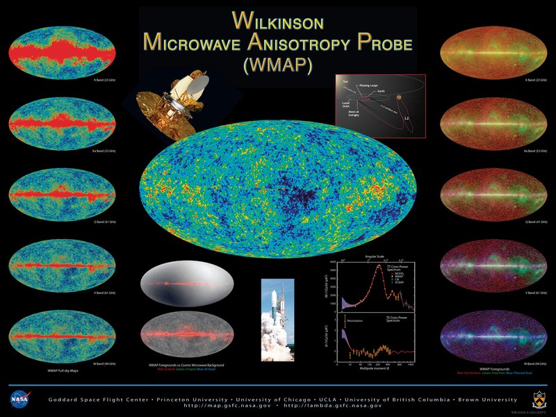 Карта СОВЕ напоминает расфокусированную фотографию: на ней видны только крупные особенности космического огненного шара, а более тонкие детали, меньше примерно 7 градусов на небе, совершенно размыты. (Для сравнения: Луна видна под углом полградуса.) За СОВЕ последовала серия других экспериментов все возрастающей точности. Последним из них стала другая спутниковая миссия WMAP. На изображении огненного шара, полученном WMAP , различимы детали размером в 1/5 градуса, то есть оно в 30 раз более резкое, чем первоначальная карта СОВЕ.